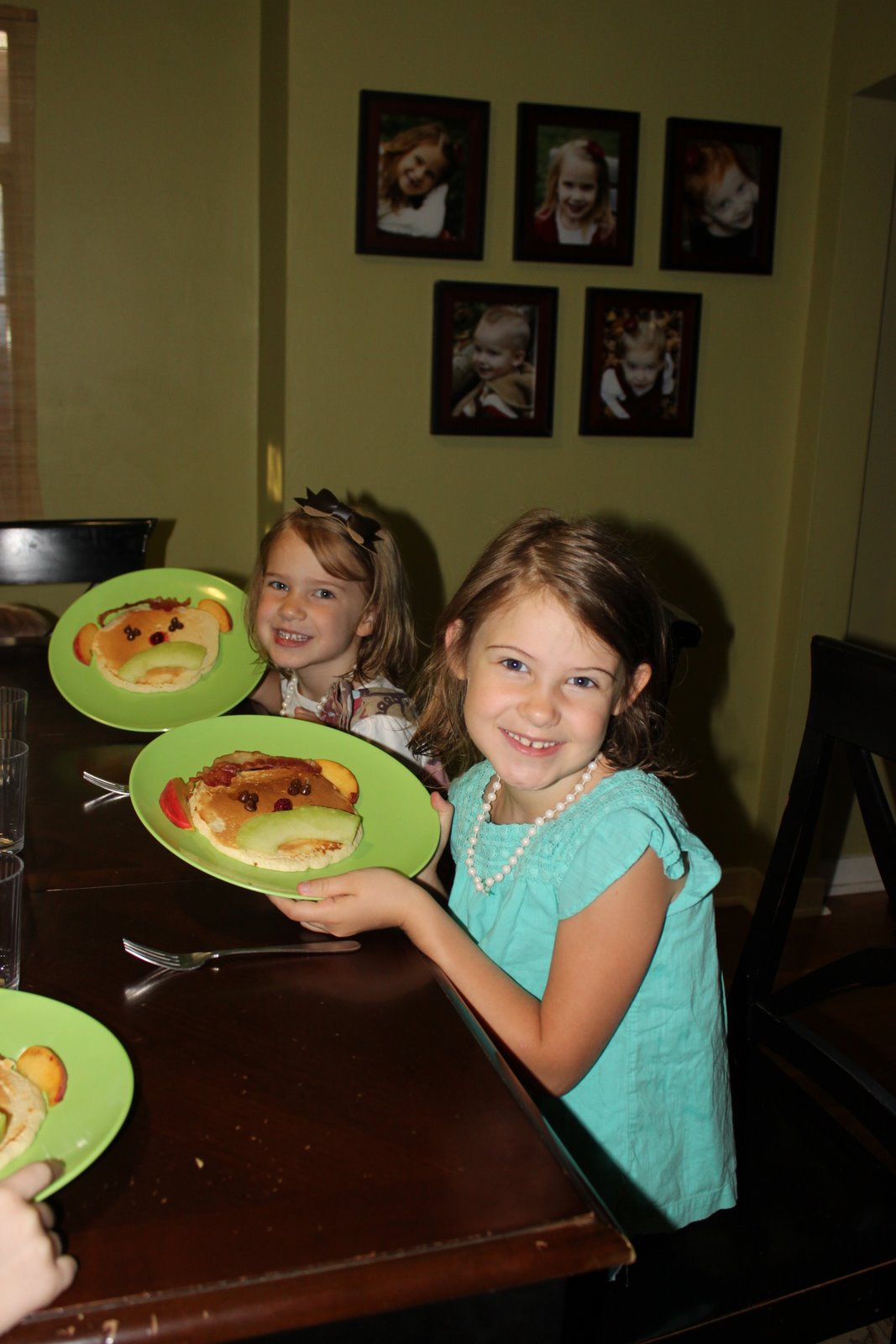 WOW, summer sure went by fast! Now, back to a routine! Can you tell the girls eyes are a little puffy this morning -- they were so excited they couldn't go to sleep last night, and then were up earlier than normal. Sweet girls. We sent them off with our traditional "BOO HOO" breakfast. It's sad for me to see them go back! :)
